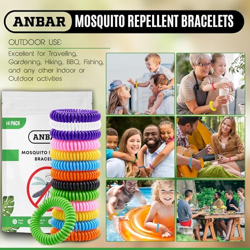 Anbar - Anbar Mosquito Repellent Bracelets Bands for Adults and Kids, 14 Pack, All-Natural Deet-Free, Non-Toxic Protection, Stretchy Waterproof Anti-Mosquito Wristbands for Hiking and Camping