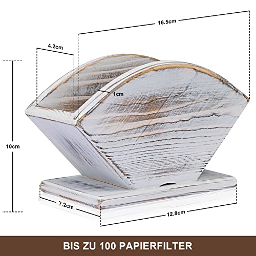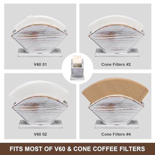 - Decoration: This coffee filter holder is farmhouse white and its surface is retro distressed. It will be a beautiful addition and accessory for your coffee counter and coffee bar.