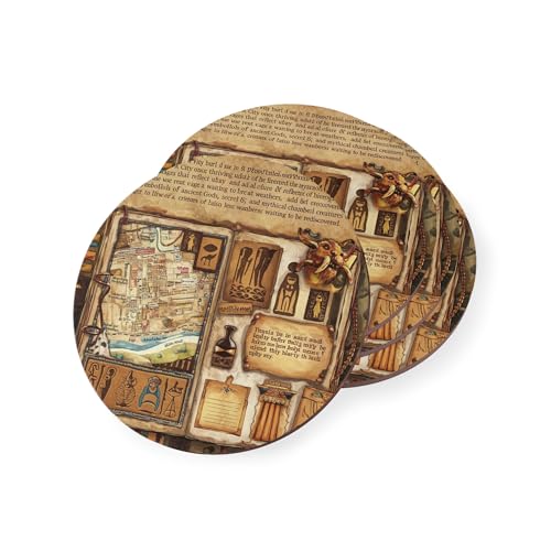 Generic - Ancient Egypt Explorer Map & Notes Coasters for Kitchen & Home - Decorative Rubber Coasters – Round Drink Coaster for Home or Office Decor Rubber Coaster Set Heat-Resistant & Durable - Set of 4