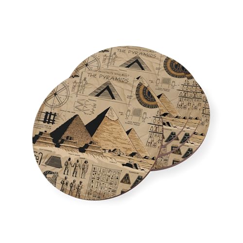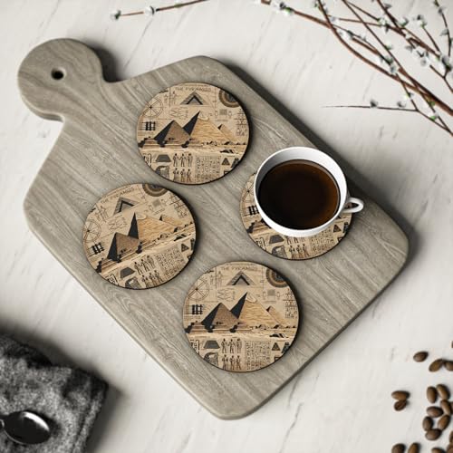 Generic - Ancient Egypt Pyramids & Blueprints Coasters for Kitchen & Home - Decorative Wood Coasters – Round Drink Coaster for Home or Office Decor Wooden Coaster Set Heat-Resistant & Durable - Set of 4