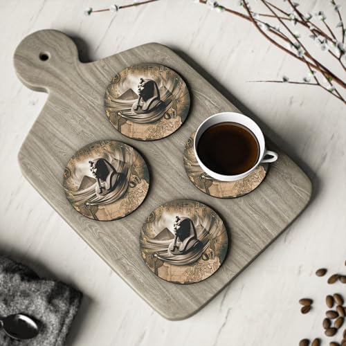 Generic - قواعد أكواب مطاطية مقاومة للحرارة ومتينة بتصميم تماثيل فرعونية وأهرامات مصرية قديمة للمطبخ والمنزل، قاعدة أكواب دائرية ديكورية للمنزل أو المكتب، مجموعة 4 قطع