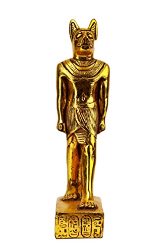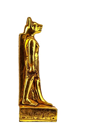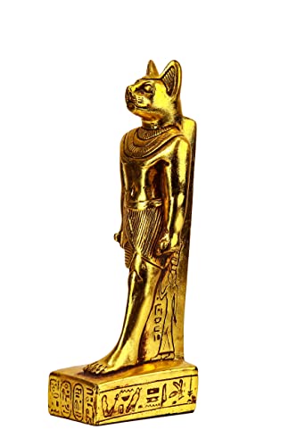 Generic - Ancient Egyptian statue of goddess Bastet cat standing heavy stone gold leaf hand painted made in Egypt. Bastet in her late form of a cat-headed woman, rather than a lioness.
