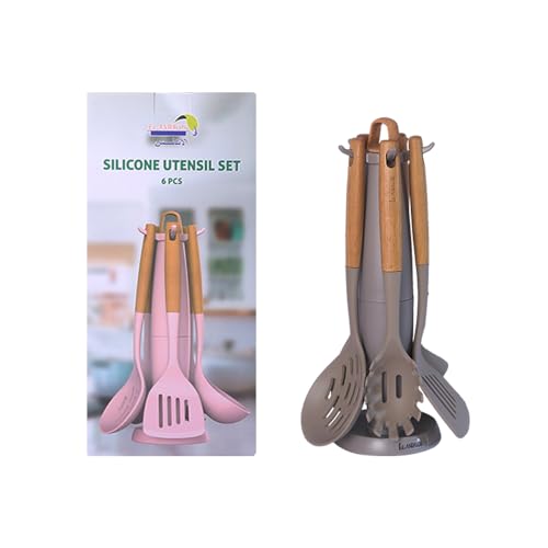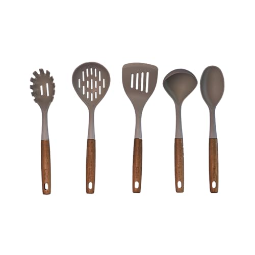 Generic - موزع من السيليكون بمقبض خشبي وحامل دوار من اندلس، مجموعة من 5 قطع