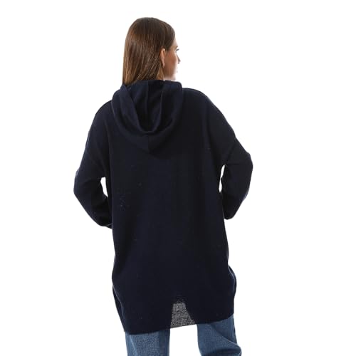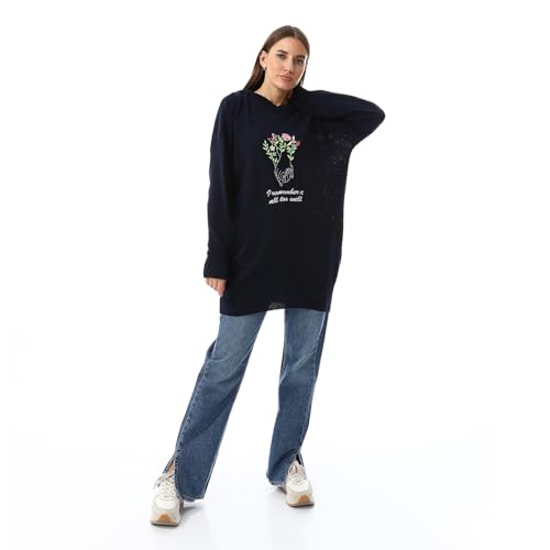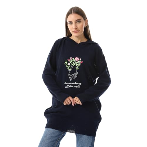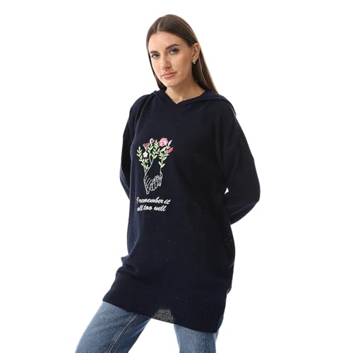 Andora - Andora I Remember It Embroidered Hooded Sweater - Navy Blue-Free, womens