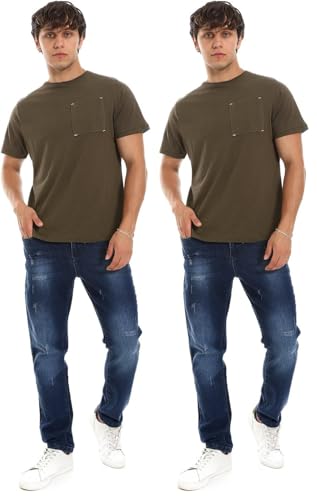 Andora - Andora Mens Stitched Pocket-35S23M30309 T Shirt, Olive, 3XL (Pack of 2)