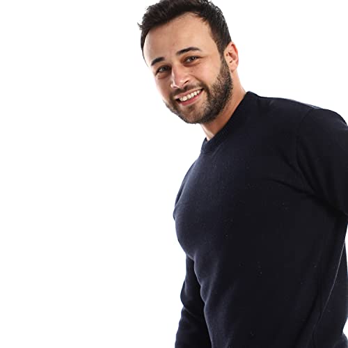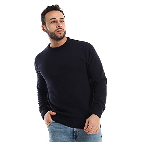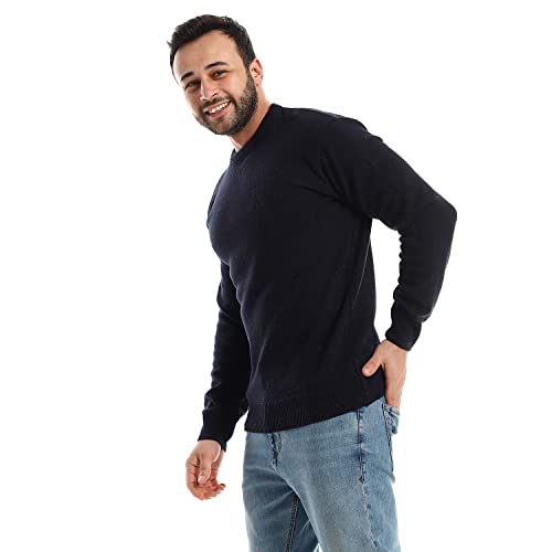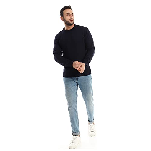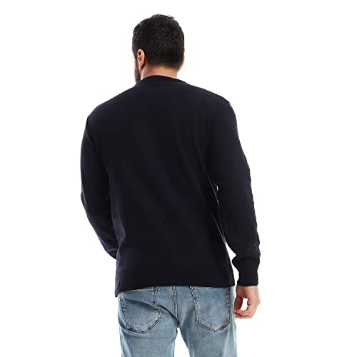 Andora - Andora-Navy Blue Knitted Slip On Pullover-3XL