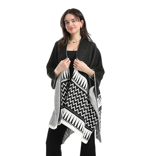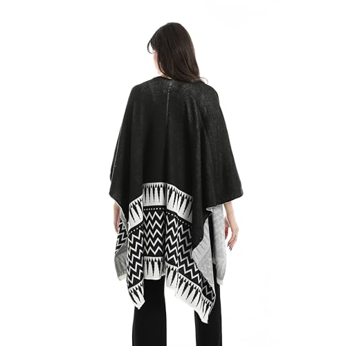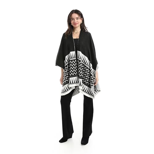 Andora - Andora Regular Fit Cape_Black & White_Free