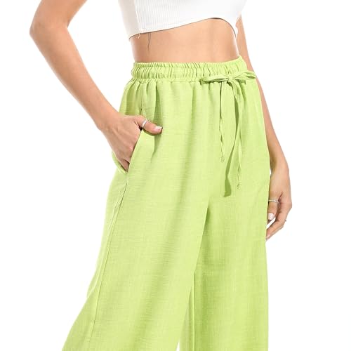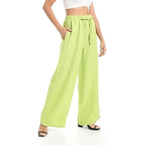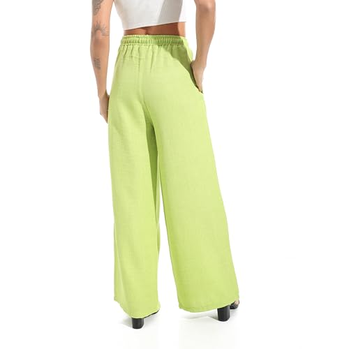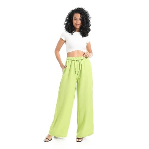 Andora - Andora Womens Plain Linen Wide Leg With Elastic Pants