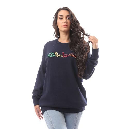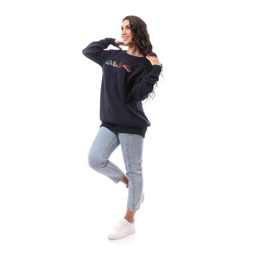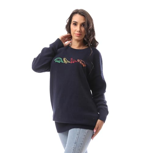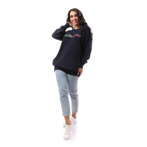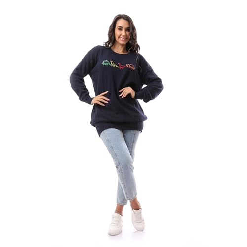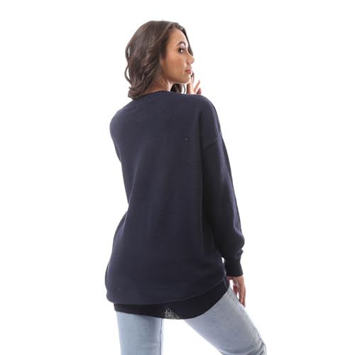 Andora - Andora womens Polyester Hoodie 36W24W4505 Casual Pullover Sweater, Navy Blue, Free