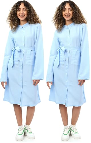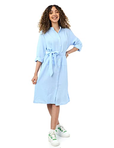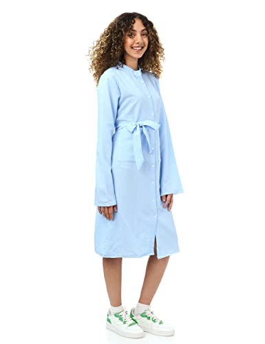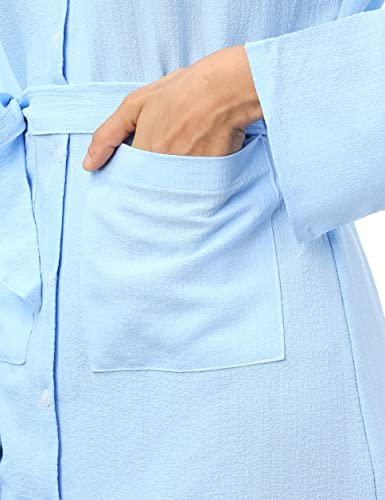 Andora - Andora womens Textured Full Buttoned Short Shirt Dress - Light Blue Casual Dress