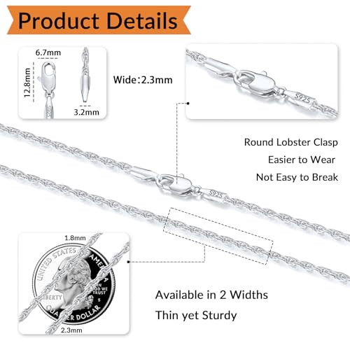 Andsion - Italian Solid 18K Gold Over Sterling Silver Chain Necklace for Women, Hypoallergenic Gold Rope Chain for Women, 1.5mm/2.5mm Non Tarnish Women's Chain Necklaces 16 18 20 22 24 26 Inch, 18 Inch