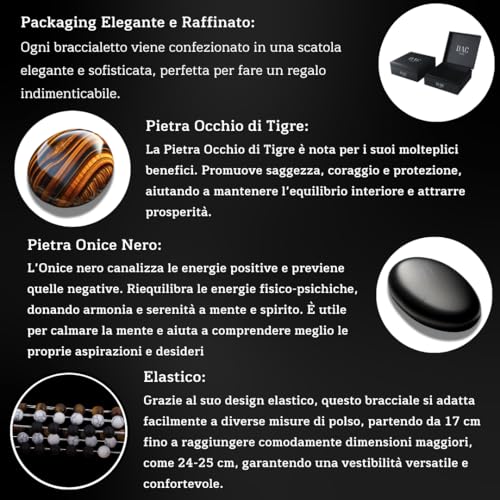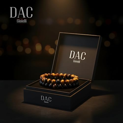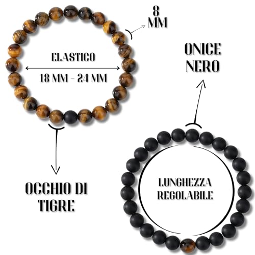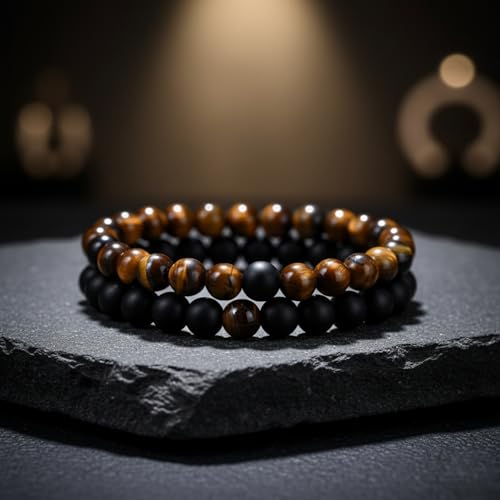 DAC - Andy & C Men's Bracelet 2 Pieces with Natural Stones Bracelet Gift Box Boyfriend Woman Chakra with Real Natural Stones Tibetan Yoga Jewelry, 21 centímetros, Stone, Natural