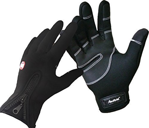 Andyshi - Gloves Men Women Winter Outdoor Sports Anti-Slip Windproof Waterproof Touch Screen Cycling Riding Skiing Running Driving Thicken Warm Fleece Lined Elastic Zipper Glove (Black2, Large)