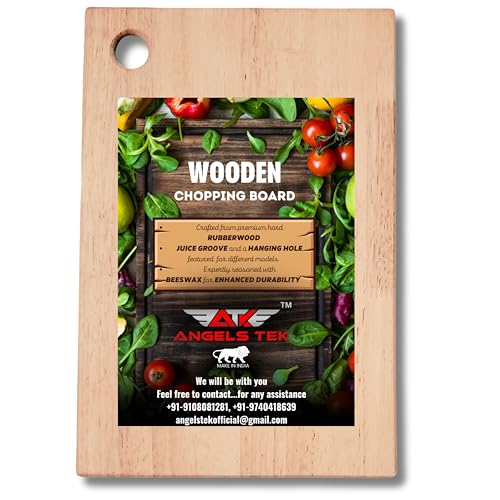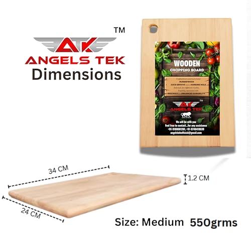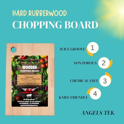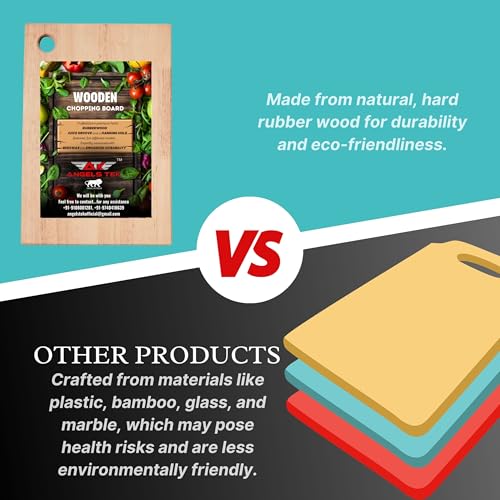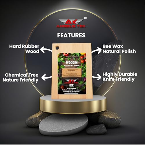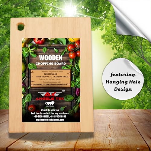 ANGELS TEK - لوح تقطيع من الخشب المطاطي من انجلز تيك - مناسب لتقطيع الخضروات والفواكه وصديق للبيئة وخالي من البيسفينول ايه ومضاد للبكتيريا والميكروبات وخالي من البيسفينول ايه (AGTK-HM12)