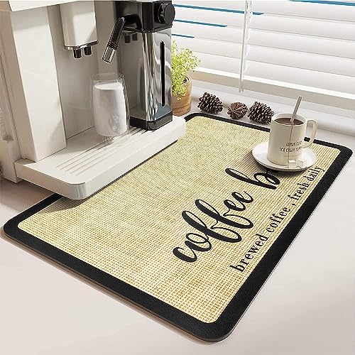 - 【Easy Clean & Quick Dry】This coffee bar mat can keep it clean by simply wiping or rinsing. Up to 90% porosity material enables the drying mat to air dry quickly. Always Keep the Countertop Clean and Tidy.