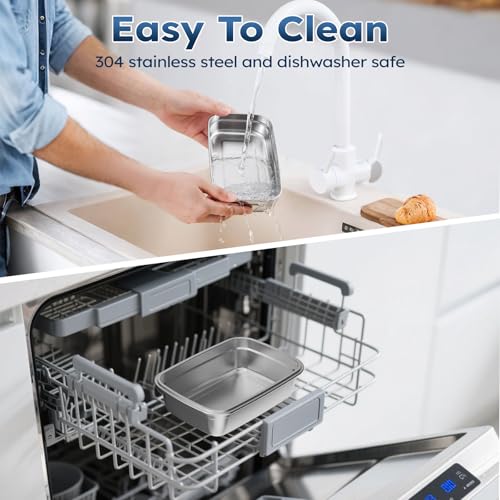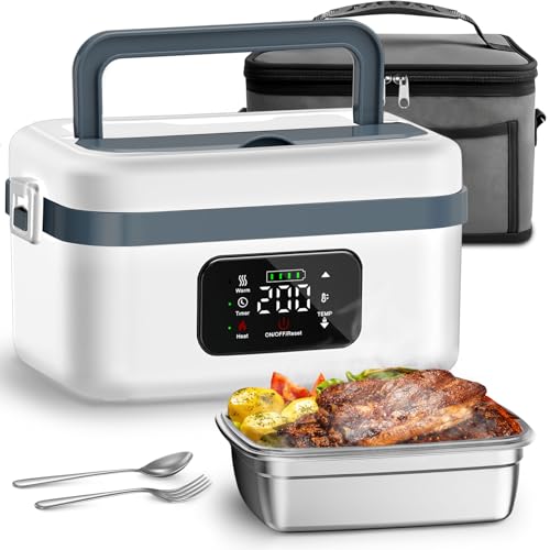 - [Easy to Clean & Portable] -- The heated lunch box for men features a 34oz/1L removable meal container and lid, both dishwasher safe, along with a fork and spoon, This design makes cleaning easy, It also features a hidden handle for easy portability and comes with an insulated bag for both convenient carrying and heat retention.