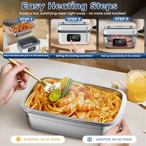 - [Smart Scheduled Heating] -- With the self heating lunch box, you can set a delay for automatic heating. Simply press the “Delay” button and adjust the timer to delay heating from 30 to 240 minutes. Choose your preferred temperature 149°F-194°F (65°C-90°C) to ensure your meal is perfectly heated when you need it. After setting, the product interface will switch to working mode within 10 seconds.