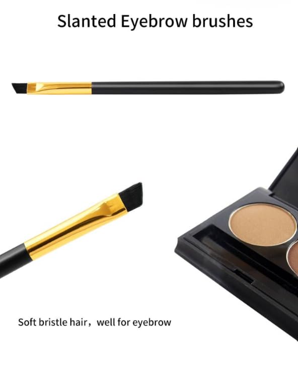 Generic - فرشاة تحديد العيون بزاوية مائلة - مسطحة بزاوية مائلة لتحديد العيون والحواجب، فرشاة مكياج عيون رفيعة ودقيقة بشعيرات صناعية، قطعة واحدة 14 سم، فرشاة سوداء وذهبية