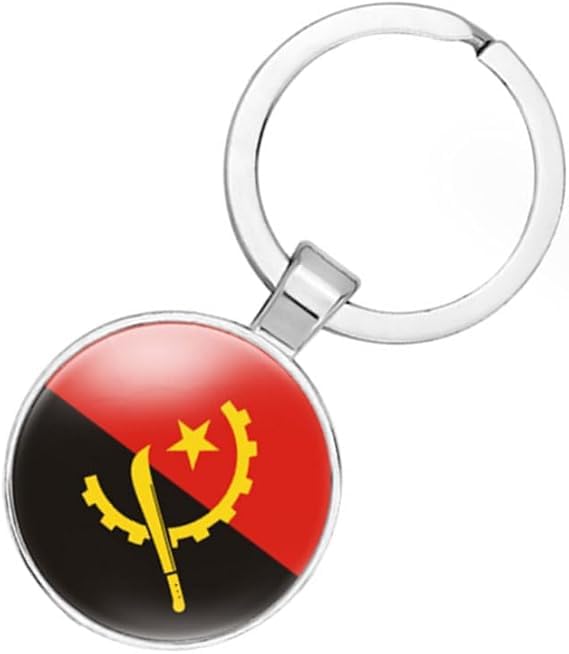 Generic - ميدالية مفاتيح معدنية بعلم أنغولا بتعليقة دائرية وألوان العلم الوطني ولمسة نهائية فضية 5×4 سم