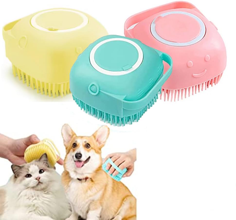 - RONA STORE Pet Bath Brush, Soft Silicone Massage Dispenser Pet Shampoo, Dog & Cat Grooming Bathing Brush - 3 Piece Green/Yellow - Pink
