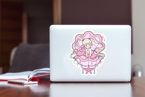 - SIZE AND STYLE: Compact decorative sticker measuring approximately 5 cm x 5 cm, featuring an adorable anime-style illustration in blue and navy tones