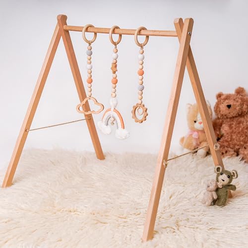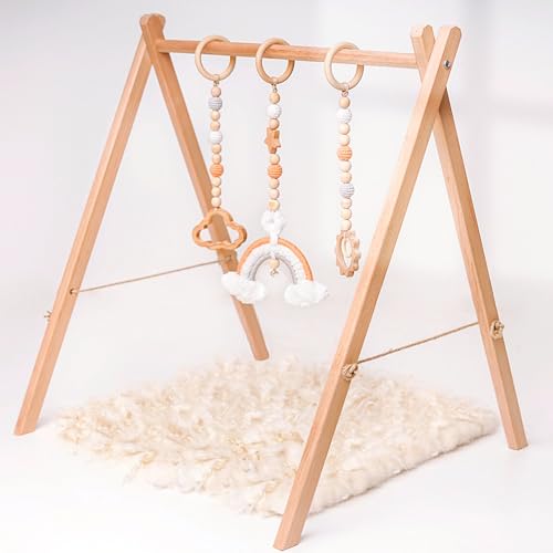 Anivex - لعبة دمية خشبية للعب الاطفال ومنطقة النشاط وصالة الالعاب الرياضية للاطفال أبيض من أنيفكس