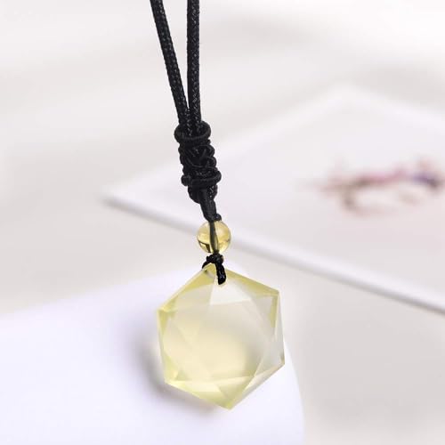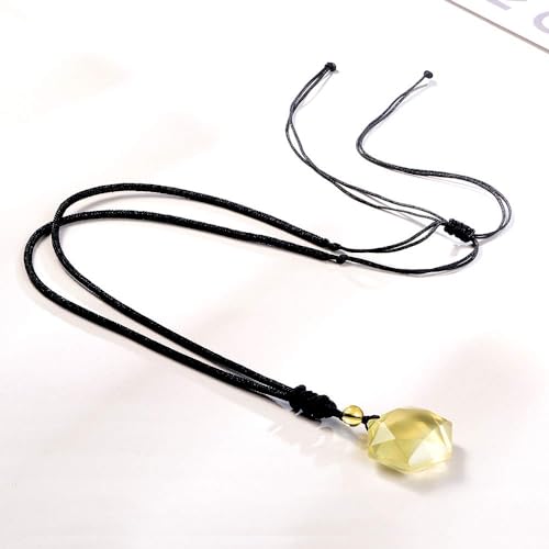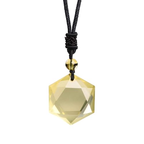 Anjiucc - Anjiucc Natural Gemstone Citrine Quartz Hexagonal Pendant Necklace with Adjustable Rope 30 inches, Male and Female Necklace