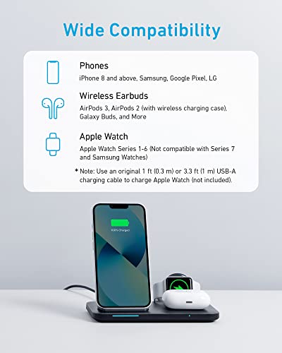 Anker - Anker Foldable 3-in-1 Wireless Charging Station with Power Supply, 335 Wireless Charger, Suitable for iPhone 15, AirPods Pro, Apple Watch 1-6 (Compatible with Original 1 m USB-A Cable, Not Included)