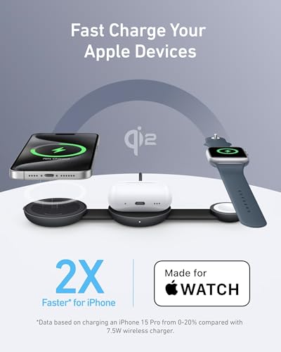 - 15W Fast Charging for iPhone and Apple Watch: Quickly power up your iPhone 15 Pro to 20% in 15 minutes and an Apple Watch Series 9 to 30% in 22 minutes with a certified and MagSafe-compatible wireless charger.