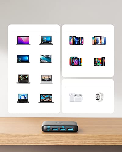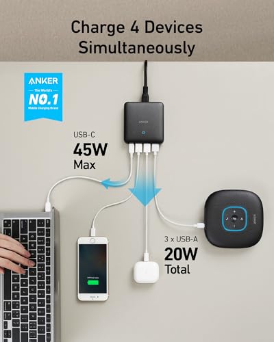 - Charge 4 Devices Simultaneously: A PowerIQ 3.0 enabled USB-C port pumps out a max 45W output to charge virtually any USB-C device at top speed, while 3 USB ports share a total of 20W to provide optimized charging for mobile devices.