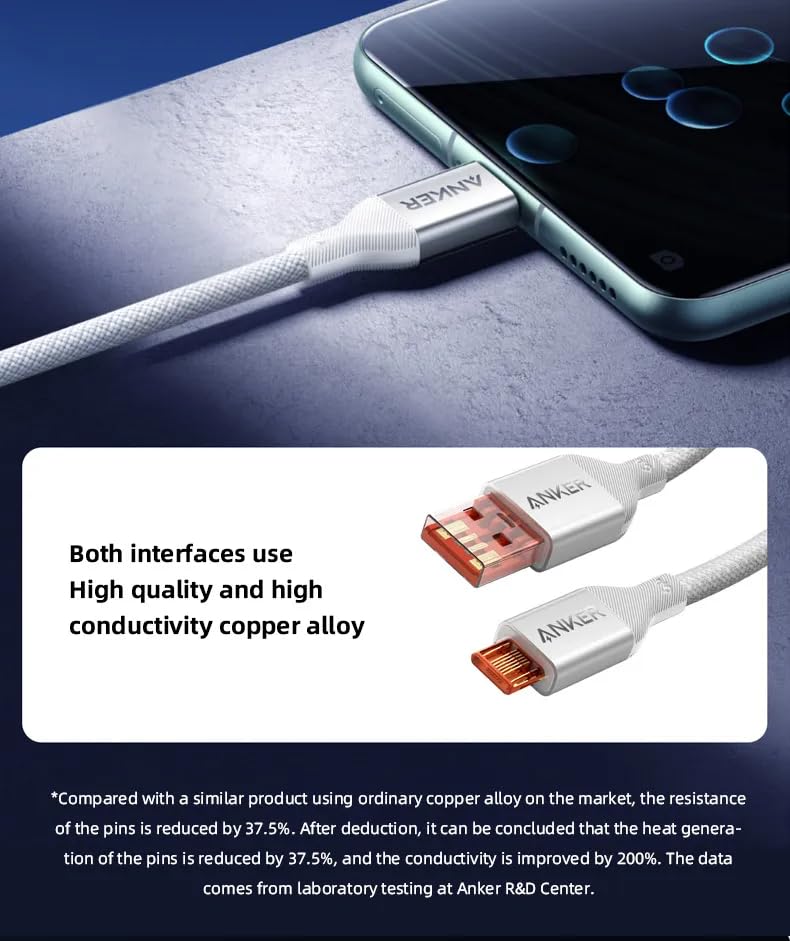 Anker - Anker USB-C to USB A 2.0, High Durability Long life Strong Fast & Sycn Type C Charging Braided Cable Compatible with Android Devices Samsung S24, S23 & iPhone 16 And more - (A8051 White)
