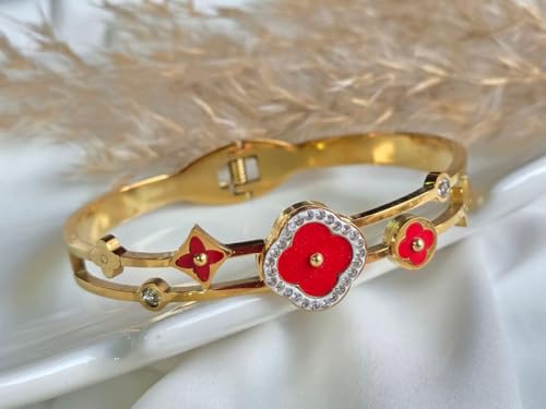Generic - سوار حلقي انيق من الستانلس ستيل بلون ذهبي مع لمسات من الكريستال، مجوهرات هدية مقاومة للصدا من انخ اكسيسوريز