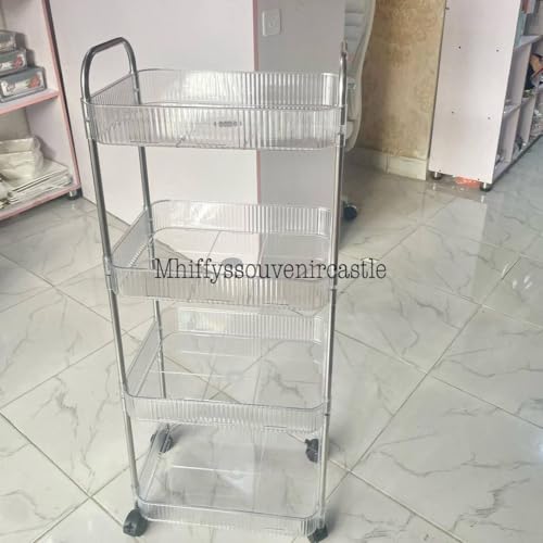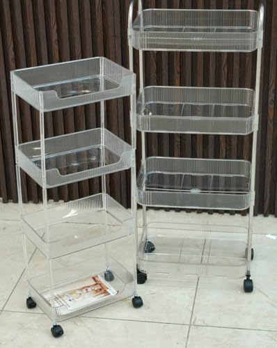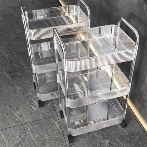 Generic - Ankh-Home-Supplies Acrylic Rolling Storage Cart with Wheels, Clear Multi-Tier Organizer, 95x40x28.5cm and 90x40x22.5cm (95x40x28.5cm)