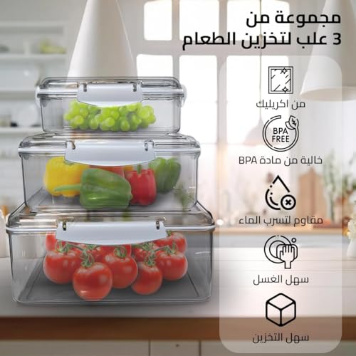 Generic - Ankh-Home-Supplies Clear Acrylic Food Storage Containers with Airtight Lids, 3-Piece Set, Kitchen Organisation