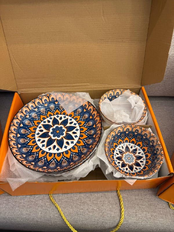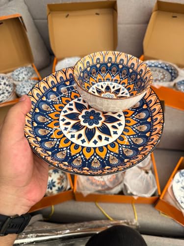 Generic - Ankh-Home-Supplies Elegant Floral Porcelain Dinnerware Set, Navy Blue and Brown Pattern, 12-Piece Decorative Plates and Bowls with Gold Trim (Color Five)
