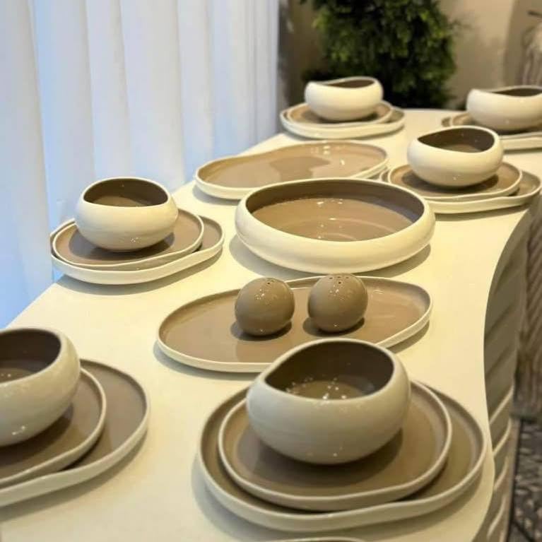 - تصميم أنيق بلونين: يتميز بنظام ألوان بيج وأبيض متطور مع لمسة نهائية من السيراميك اللامع يكمل إعدادات الطاولة الحديثة والتقليدية