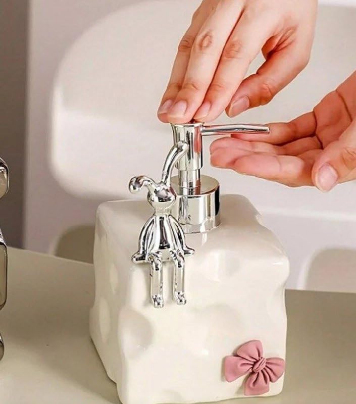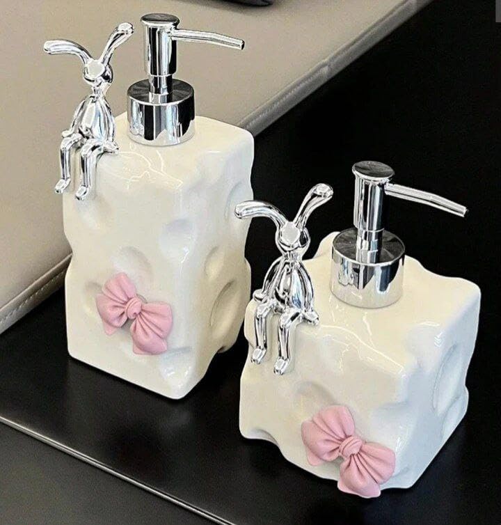 Generic - Ankh-Home-Supplies Elegant Porcelain Soap Dispenser with Chrome Figure Accent, White with Pink Bow, Decorative Bathroom Accessory, 1 Piece (Medium)
