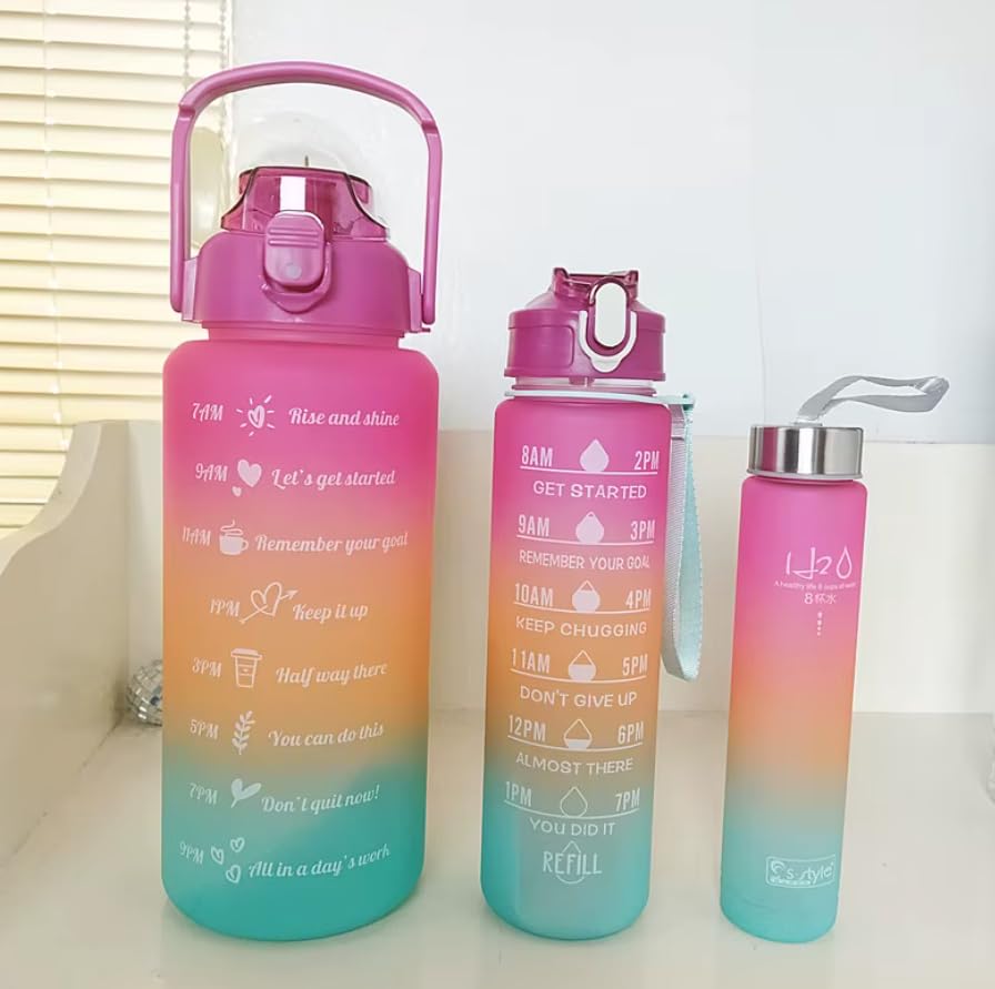 Generic - Ankh-Home-Supplies Motivational Water Bottle Set, 1L Gradient Time Marker Bottles, 3-Pack (Pink)