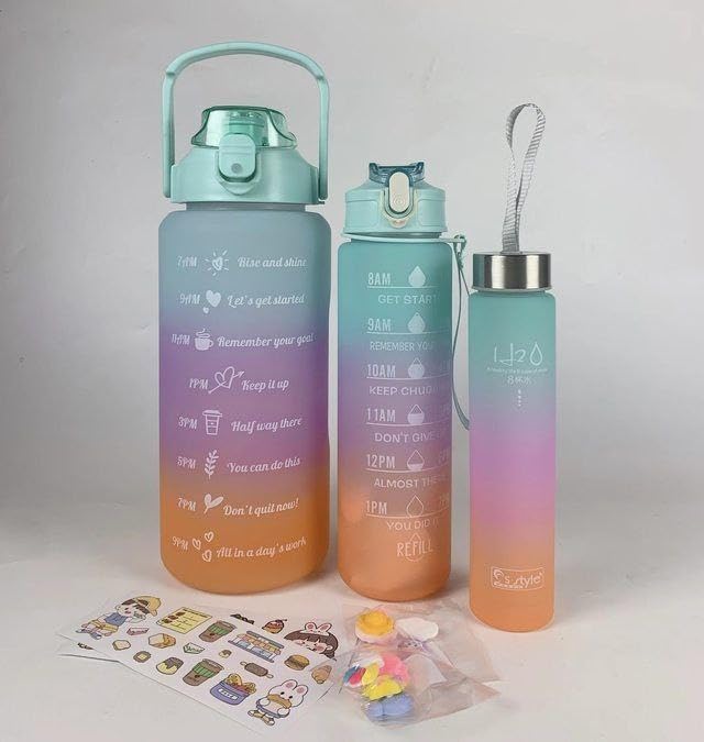 - CAPACITY & DESIGN: Set of 3 jumbo 1-litre water bottles with gradient colour design and clear time markers for tracking daily hydration goals