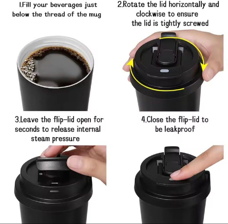 - تصميم مبتكر للغطاء: غطاء مفتوح بالضغط خالٍ من البيسفينول ايه مع مانع للتسرب ونظام تحرير ضغط البخار للشرب الآمن