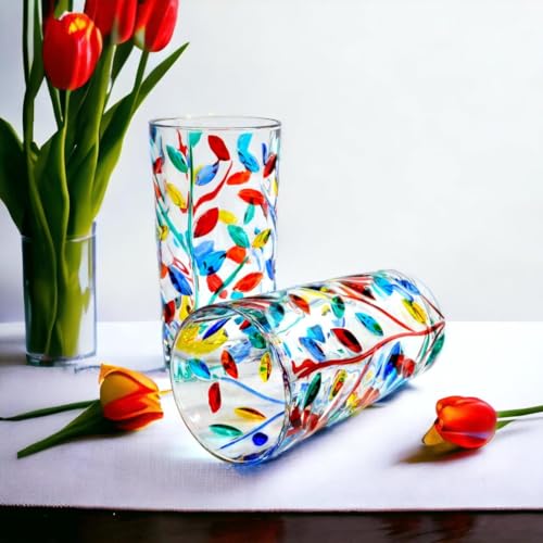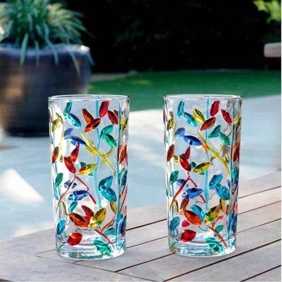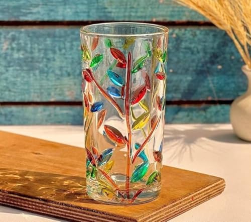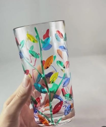 - حرفية حرفية: يتميز كل كوب زجاجي بتصميم جميل مطلي يدويًا مع أوراق متعددة الألوان نابضة بالحياة وسيقان نباتية، مما يجعل كل قطعة فريدة من نوعها ويضيف لمسة فنية إلى مجموعة أدوات الشرب الخاصة بك