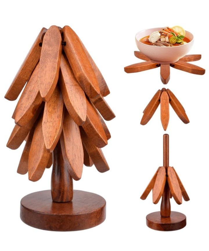 Generic - Ankh-Home-Supplies Wooden Tree-Shaped Hot Pot Stand and Coasters Set, 5 Foldable Trivets with Stand, Kitchen Table Protectors