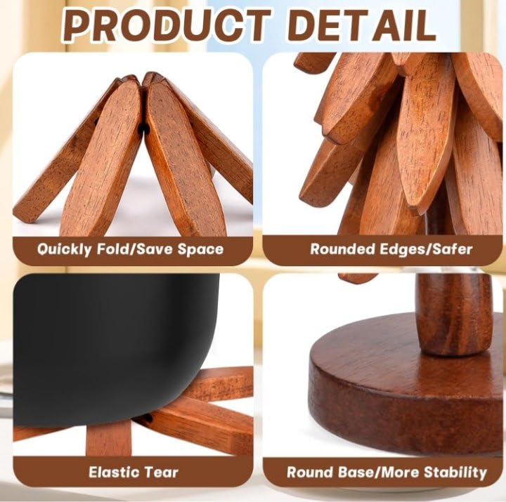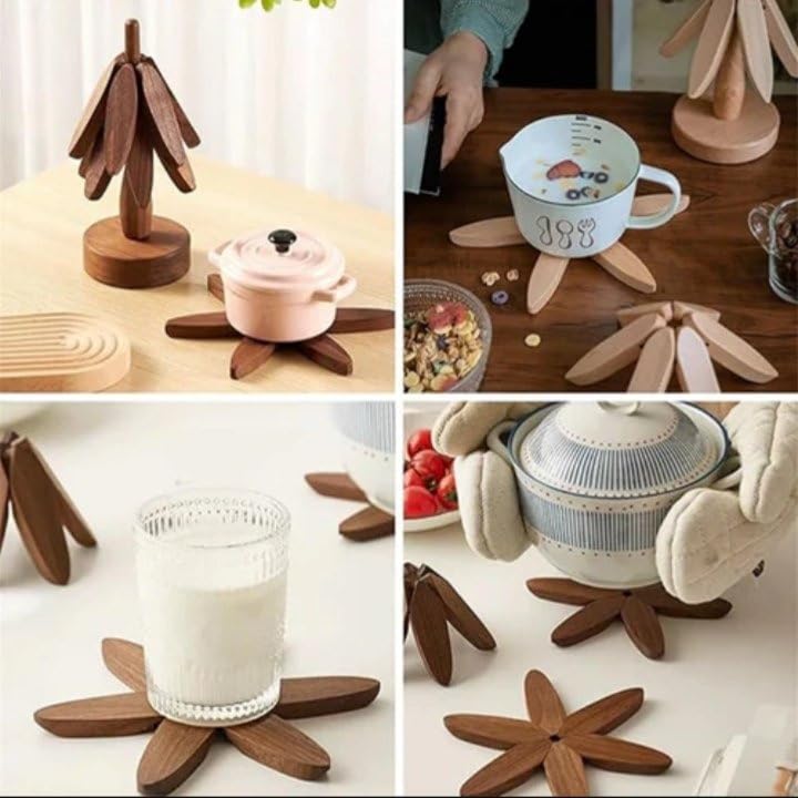 - DESIGN: Tree-shaped wooden trivet stand with 5 detachable coasters, perfect for protecting your table from hot dishes and teapots