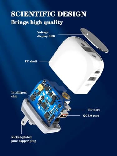 - Dual USB ports, support PD + QC3.0 quick charging *Fireproof PC shell, keep safe using *LED display, to show you device charging status