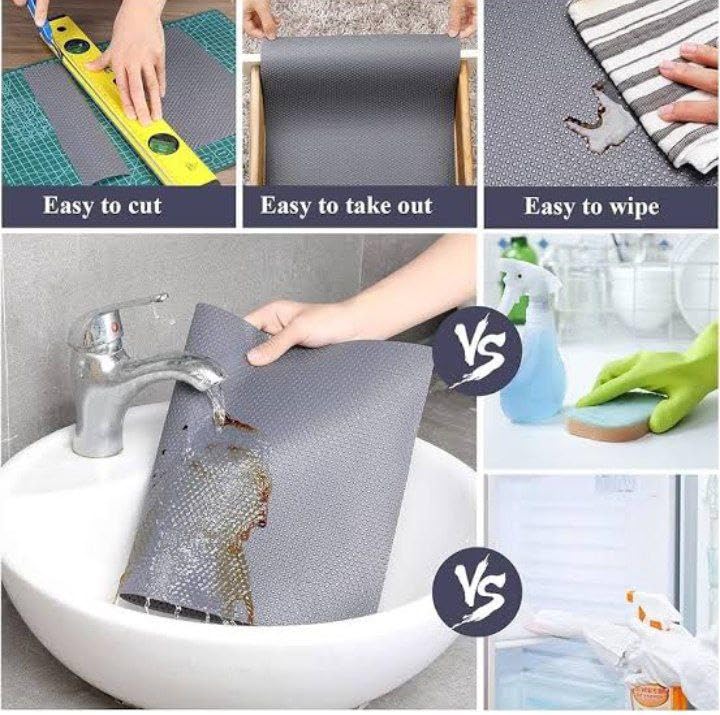 - VERSATILE APPLICATION: Waterproof and non-slip mat ideal for kitchen drawers, shelves, cabinets, and other storage surfaces