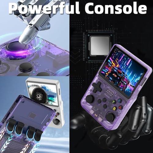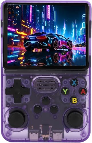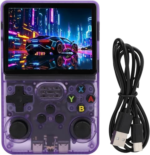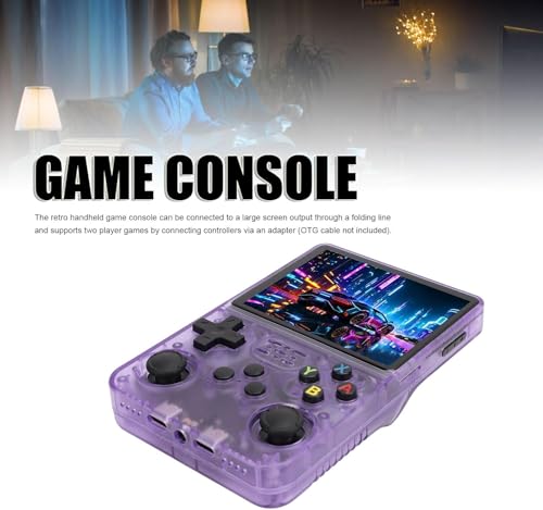 Generic - جهاز تشغيل ألعاب فيديو رقمية محمول R36S، نظام ألعاب محمول بشاشة بمعيار مقاومة المياه مقاس 3.5 بوصة، بطارية 3000 مللي امبير في الساعة، ذاكرة 64 جيجابايت من عنخ جيفت شوب، أرجواني شفاف