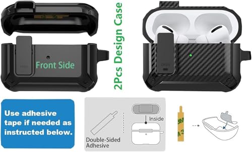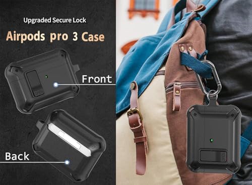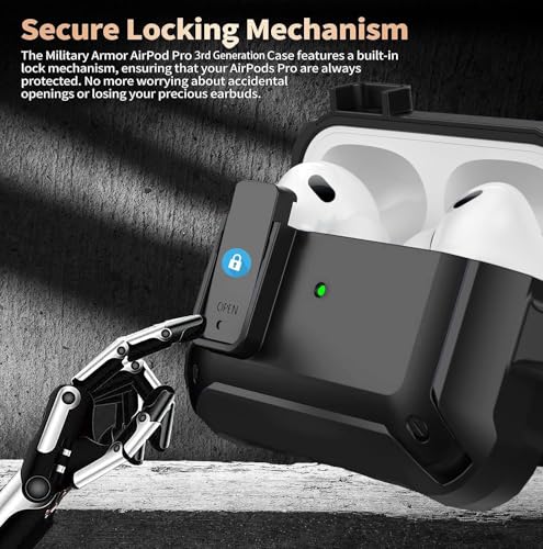 Generic - جراب حماية متين لسماعة ايربودز برو الجيل الثالث 2025 مع مشبك قفل، غطاء واقي صلب مقاوم للصدمات مع حلقة تثبيت ومجموعة تنظيف من عنخ جيفت شوت، أسود