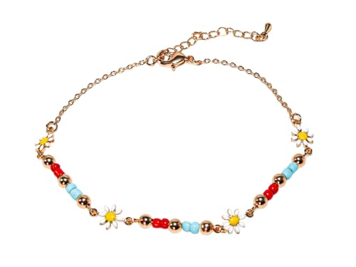 Generic - Anklet Flowers Daisy For Girls Summer Stainless Steel Colourful Enamel18k Gold Plated Plated Women Dainty Friendship Gift- Adjustable
