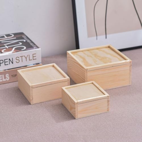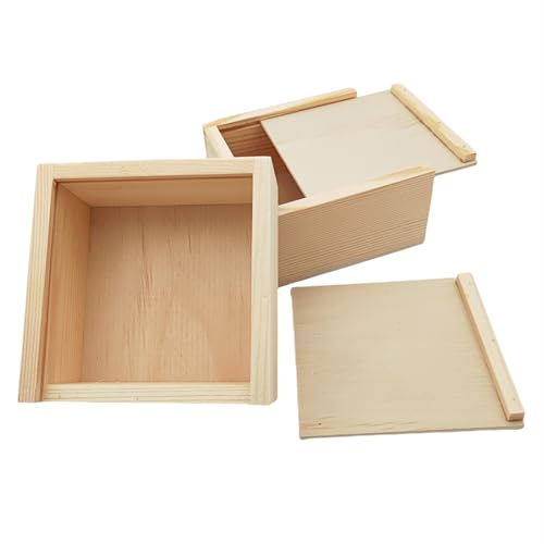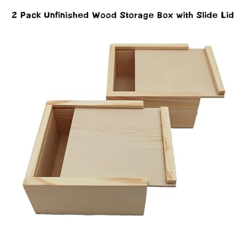 Anktily - Anktily 2 Pack Unfinished Wood Storage Box with Slide Lid, Blank Natural Wood Box Case Container for Jewellery, DIY Arts & Crafts Hobbies (10x10x5cm)