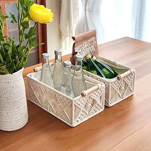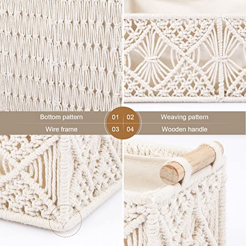 ANMINY - ANMINY 5PCS Macrame Storage Baskets Set Handmade Woven Cotton Rope Storage Bins Decorative Boxes with Wood Handles Removable Washable Linen Liner Countertop Toilet Tank Shelf Closet Cabinet Organizer